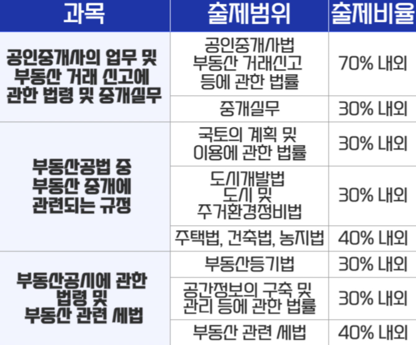 공인중개사 시험과목을 공유해드렸습니다. 공인중개사 시험 독학은 많이 어려우실 겁니다. 특히, 1년정도 잡고 공부할 정도로 양이 많으니 인강을 들으면서 1년의 충분한 기간을 잡고 반복하길 추천드립니다.